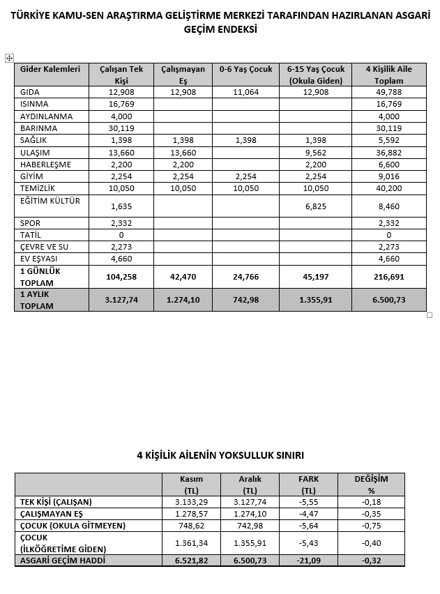 * Bunun yanında tüm kamu görevlilerine giyim, kira, evlenme, ulaşım, ısınma, yemek, doğum, ölüm ve eğitim yardımı ödenmesini, sosyal devlet ilkesinin gerçek anlamda hayata geçirilmesini talep ediyoruz.