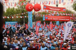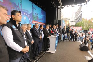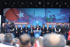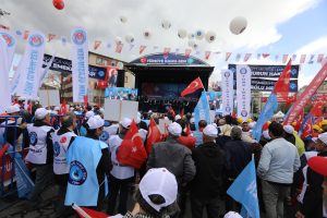Seymen ekibinin oyunlarıyla karşıladığı kortejimiz ve meydanda toplanan on binlerce Türkiye Kamu-Senlinin coşkusu doruğa çıktı.