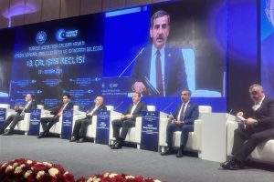 Konuşmasına katılımcıları selamlayarak başlayan Genel Başkan Önder Kahveci ilk olarak geçtiğimiz günlerde Bolu’da yaşanan otel yangınına değinerek, hayatını kaybeden vatandaşlarımıza yüce Allah’tan rahmet diledi. Kahveci, “Okulların kapanmasının ardından ara tatilin ilk günlerinde Bolu Kartalkaya’da bir otelde yaşanan yangın bizleri derin bir üzüntüye boğdu. 78 vatandaşımızın hayatını kaybettiği haberiyle hepimiz derinden sarsıldık. Bu yangında hayatını kaybeden tüm vatandaşlarımıza yüce Allah’tan rahmet diliyorum. Aileleri, yakınları ve milletimize başsağlığı diliyorum. Bu olayda kusuru bulunan herkesin yüce Türk adaleti önünde hesap vereceğine inancımız tamdır. Böylesine acı olayların bir daha yaşanmaması adına gerekli tedbirlerin ve denetimlerin kusursuz bir şekilde yapılmasının ne kadar önemli olduğunu bu olayla birlikte bir kez daha gördük. Ben tekrar hayatını kaybeden vatandaşlarımıza Allah’tan rahmet diliyorum, yakınlarına ve milletimize sabırlar temenni ediyorum” dedi.