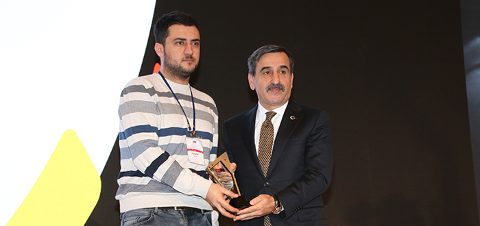 Panel sonunda Genel Başkanımız Önder Kahveci, proje kapsamında düzenlenen yarışmada dereceye girenlerden kısa film dalında ödül alan yarışmacıya ödülünü takdim etti.