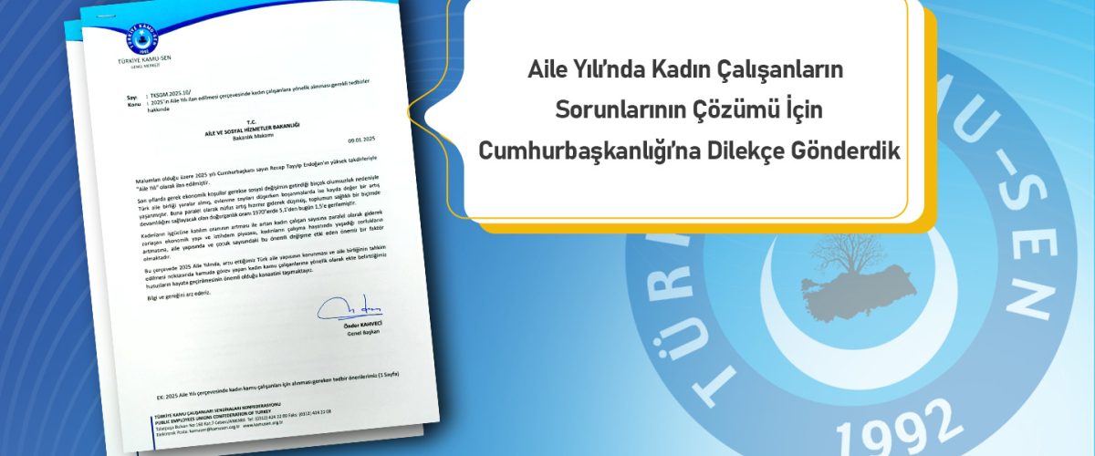 AİLE YILI’NDA KADIN ÇALIŞANLARIN SORUNLARININ ÇÖZÜMÜ İÇİN CUMHURBAŞKANLIĞI’NA DİLEKÇE GÖNDERDİK