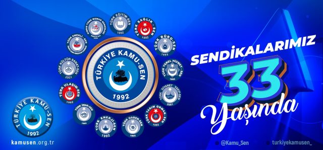 “Türkiye Kamu-Sen’i var eden kıymetli sendikalarımızın kuruluş yıldönümünü ve milletimizin öz değerlerinden, vatan ve millet sevgisinden, milli birlik ve beraberlik anlayışından taviz vermeden sürdürülen sendikal mücadelemizin 33. yılını gururla kutluyoruz.