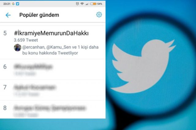 Saat 21’de Genel Başkanımız Önder Kahveci’nin attığı #İkramiyeMemurunDaHakkı Adalet de bunu gerektirir” twitiyle başlayan etkinlik kısa sürede TT listesinde ilk sıralara yükseldi.