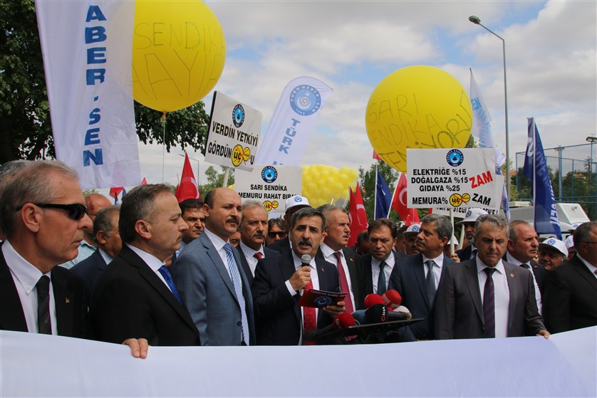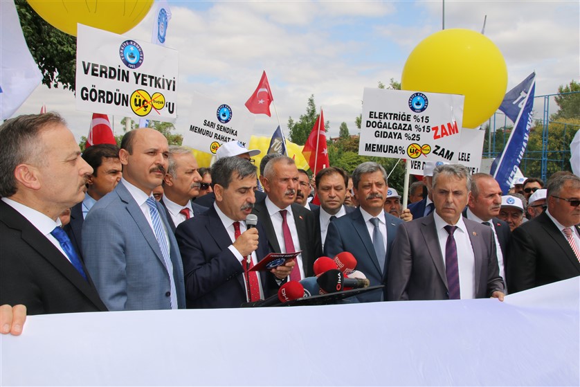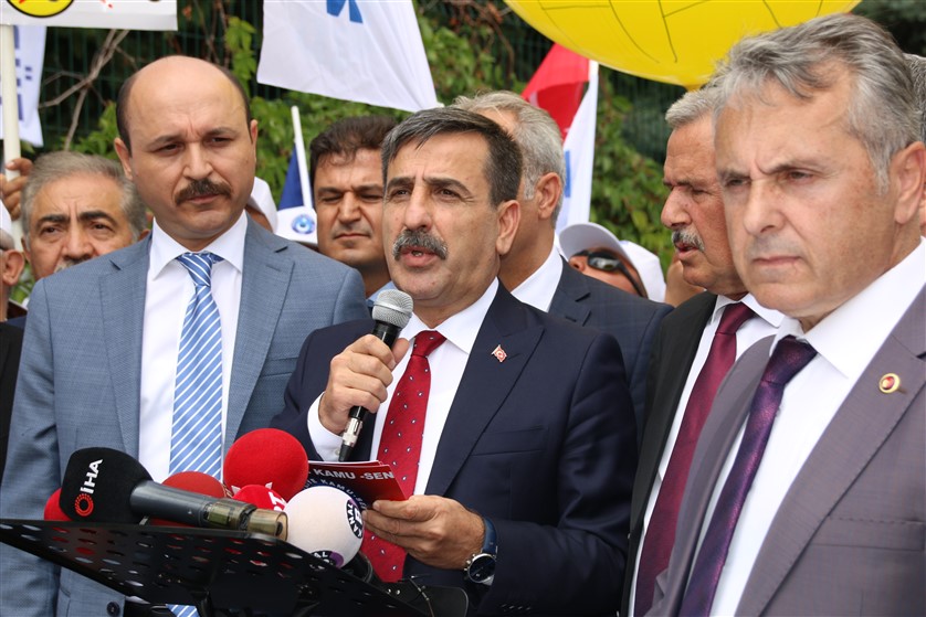 “Hepinizin bildiği gibi 3 milyon memur, 2 milyon emekli, aileleriyle birlikte 20 milyon vatandaşımızı doğrudan ilgilendiren, nüfusumuzun 4’te 1’inin iki yıllık geleceğini şekillendirecek toplu sözleşme görüşmeleri büyük bir hayal kırıklığına doğru gitmektedir. Geçtiğimiz yıl gerçekleşen resmi enflasyon %20,3 oldu. 4 kişilik ailenin vaz geçemeyeceği, zorunlu harcama tutarı 1032 lira artarken memur maaşlarına koca bir yıl için toplam 441 lira zam yapıldı. TÜİK’in açıklamasına göre yalnızca kiraya son bir yıl içinde gelen zam 100 lira. Ailenin aylık gıda harcamasına gelen zam ortalama 197 lira. Doğalgaza bir yıl içinde gelen zam %18,6. Elektriğe %34,8 zam yapılmış. Mutfak yangın yerine dönmüş, memurun, emeklinin bütçesi tarumar olmuş… Hem resmi rakamlar hem de yaptığımız hesaplar, memur ve emeklinin alım gücünün düştüğünü gösteriyor.