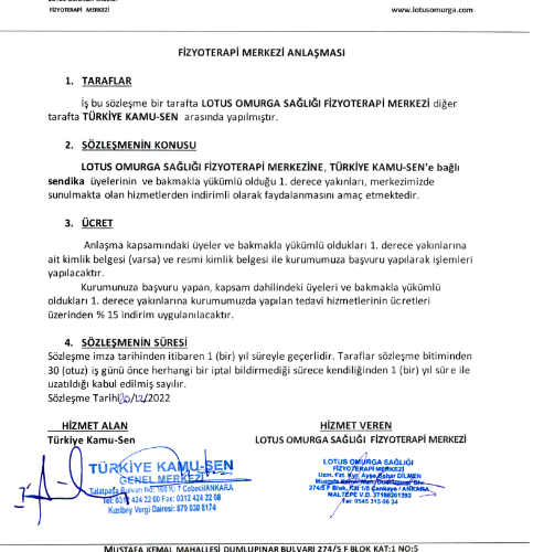 LOTUS FİZYOTERAPİ MERKEZEİ İLE ANLAŞMA İMZALADIK