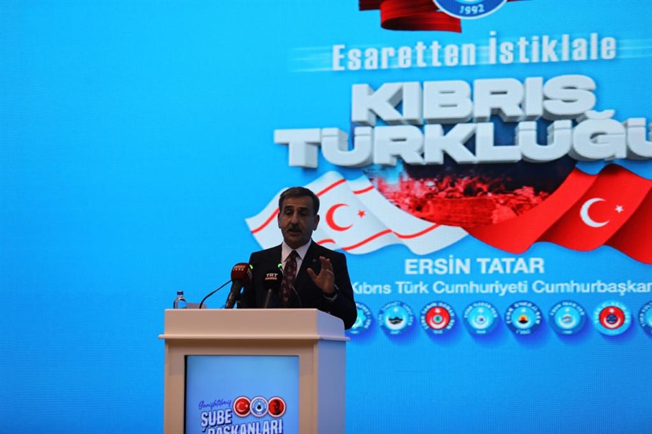 Cumhurbaşkanı Ersin Tatar, “Bu güzel ve anlamlı toplantıya davet edilmekten onur duymaktayım. Türkiye’nin en etkin ve köklü konfederasyonlarından birisi olan Kamu-Sen mensuplarıyla bir arada olmaktan memnuniyet duyuyorum.” dedi.