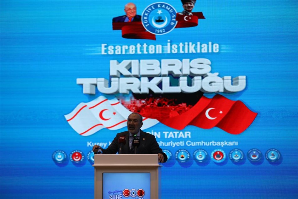 Coşku ve alkışlarla kürsüye çıkan gelen Kuzey Kıbrıs Türk Cumhuriyeti Cumhurbaşkanı Ersin Tatar ise yaptığı konuşmada, Türkiye Kamu-Sen mensuplarıyla bir arada olmaktan büyük mutluluk duyduğunu ifade etti.