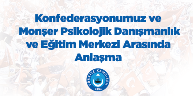 Konfederasyonumuz ve Monşer Psikolojik Danışmanlık ve Eğitim Merkezi arasında Türkiye Kamu-Sen üyelerine özel indirim anlaşması imzalandı. Anlaşmanın detayları aşağıda ilginize sunulmuştur.