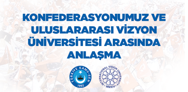 Konfederasyonumuz ve Uluslararası Vizyon Üniversitesi arasında Türkiye Kamu-Sen üyelerine özel indirim anlaşması imzalandı. Anlaşmanın detayları aşağıda ilginize sunulmuştur.