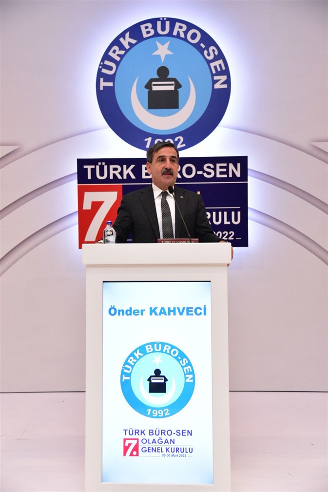 Bizler sizlerin her zaman desteği olmaya devam edeceğiz. Bu vesileyle, Türk Büro-Sen 7. Olağan Genel Kurulunu bir kez daha tebrik ediyor, yeni seçilen arkadaşlarımız kutluyor, görevden ayrılanlara ise teşekkürlerimi sunuyorum” dedi.