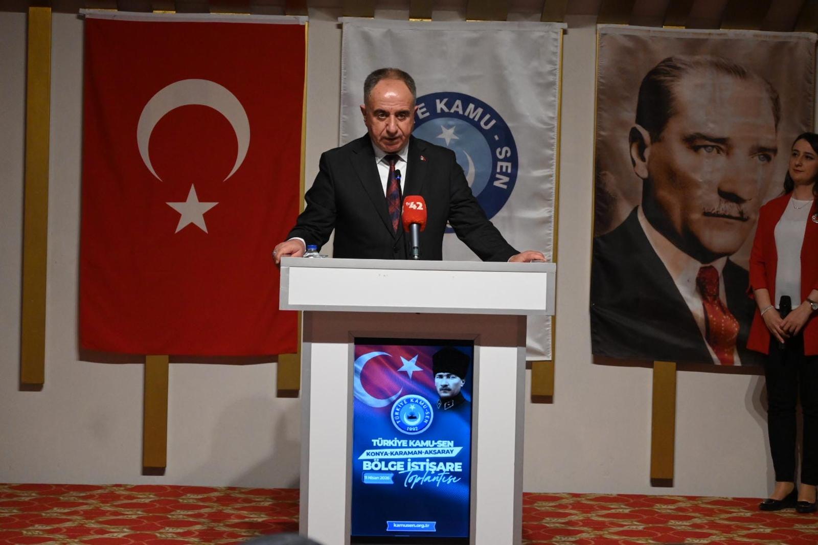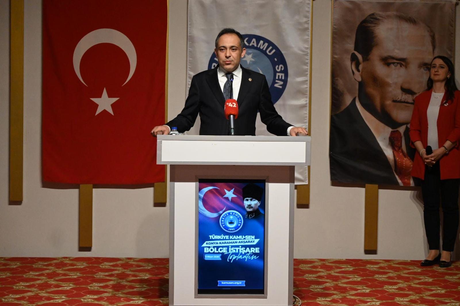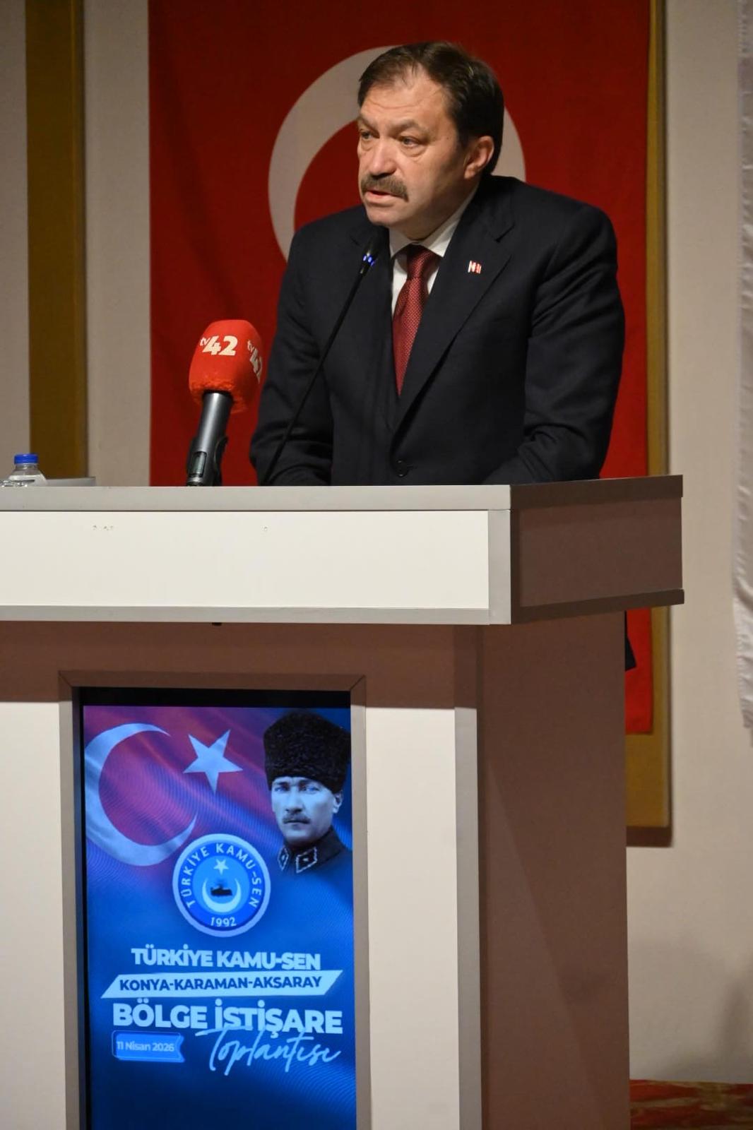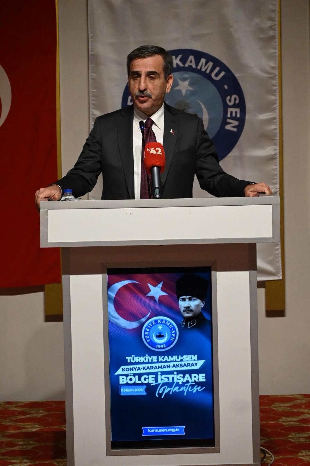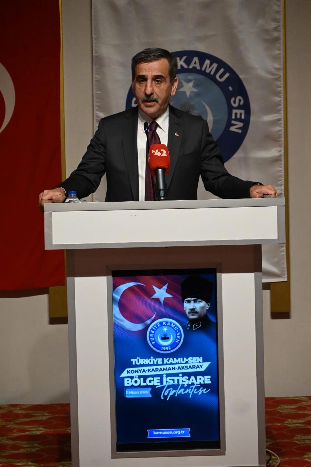 “Türkiye Kamu-Sen’in sarsılmaz iradesini ve haklı mücadelesini Konya’dan bir kez daha güçlü şekilde ilan ediyoruz. Kamu çalışanlarımızın umudu olan bu kutlu hareketi bölgemizde daha da büyüteceğiz. Kapı kapı dolaşarak her bir kamu görevlimize ulaşacak, yetkiyi almak için kararlılıkla çalışacağız. Bu dava yalnızca bir sendikal mücadele değil; alın terinin, adaletin ve liyakatin mücadelesidir.” dedi.