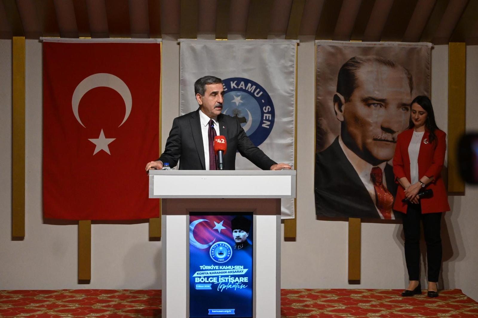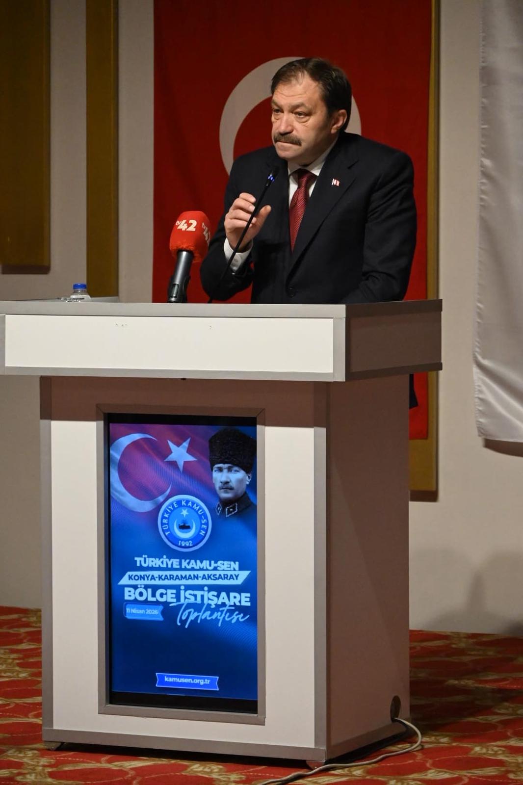 “Konya, Karaman ve Aksaray teşkilatlarımızın ortaya koyduğu kararlılık bizlere güç vermektedir. Önümüzdeki süreçte hem sahada hem de toplu sözleşme masasında daha güçlü bir Türkiye Kamu-Sen olacak. Her üyemiz bu mücadelenin asli unsurudur. Birlik ve disiplin içerisinde hareket ettiğimiz sürece aşamayacağımız hiçbir engel yoktur.”