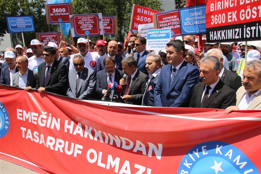 İsraftan tasarruf olur; lüksten tasarruf olur; fazladan tasarruf olur ama azdan tasarruf olmaz; ihtiyaçtan tasarruf olmaz; emeğin hakkından tasarruf olmaz; alın terinin karşılığından tasarruf olmaz. Söz konusu tasarruf olduğunda ilk başvurulacak yer, kamu çalışanlarının haklarını budamak olmamalıdır. Bir kere de çalışanların beklentilerine yönelik bir düzenleme yapılmalıdır. Bilinmelidir ki, Türkiye Kamu-Sen olarak tek bir kamu çalışanımızın dahi kazanılmış hakkının elinden alınmasına müsaade etmeyecek, haklarımızın korunması için her türlü mücadeleyi yapacağız” dedi.