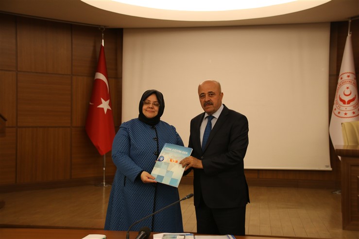 Bakanlık binasında gerçekleşen görüşmede Genel Başkanımız Önder Kahveci, Sendikalarımızın Genel Başkanları ve Genel Merkez yöneticileri de hazır bulundu.