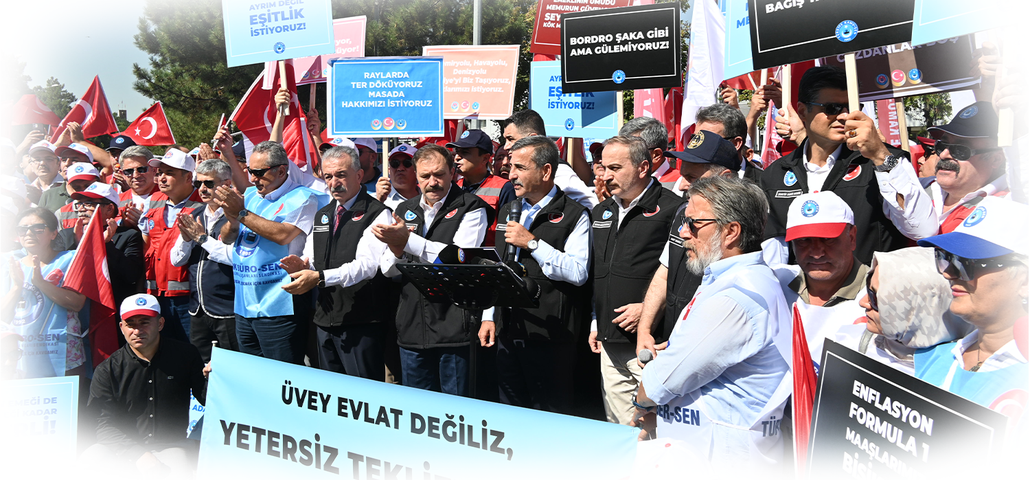 “Bugün burada yalnızca kendi geleceğimiz için değil, 4 milyon kamu çalışanı, 2,5 milyon emekli ve aileleriyle birlikte 25 milyon insanımızın onurlu bir yaşam mücadelesi için toplandık. Bizler, emeğin, alın terinin ve kamu hizmetinin temsilcileriyiz.