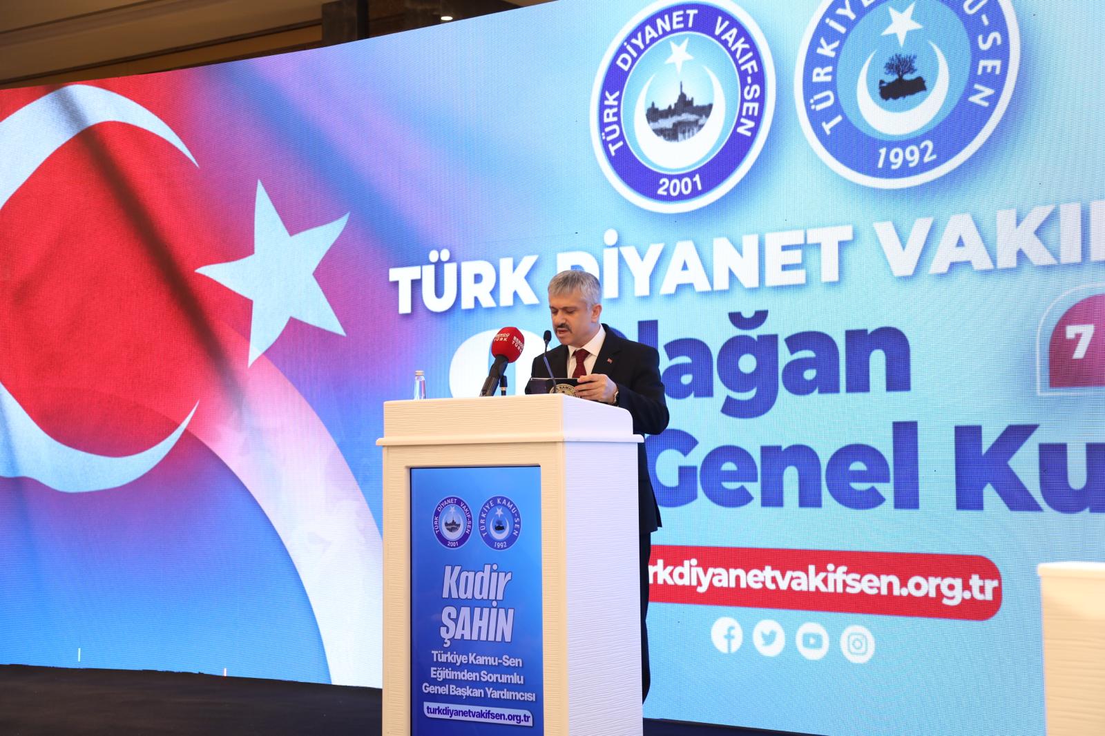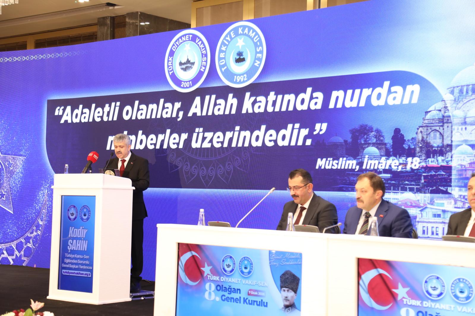 Türk Diyanet Vakıf-Sen 8. Olağan Genel Kurulu’nun açılış konuşmasını yapan Türkiye Kamu-Sen Yönetim Kurulu Üyemiz Kadir Şahin;