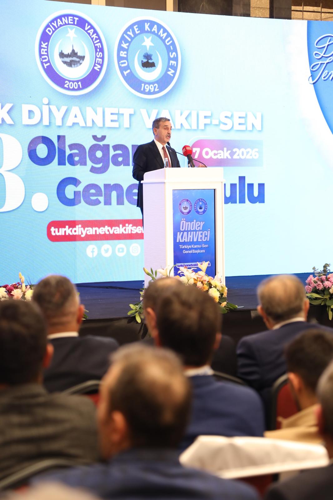 Türk Diyanet Vakıf-Sen 8. Olağan Genel Kurulu’nda katılımcılara hitap eden Türkiye Kamu-Sen Genel Başkanımız Önder Kahveci,