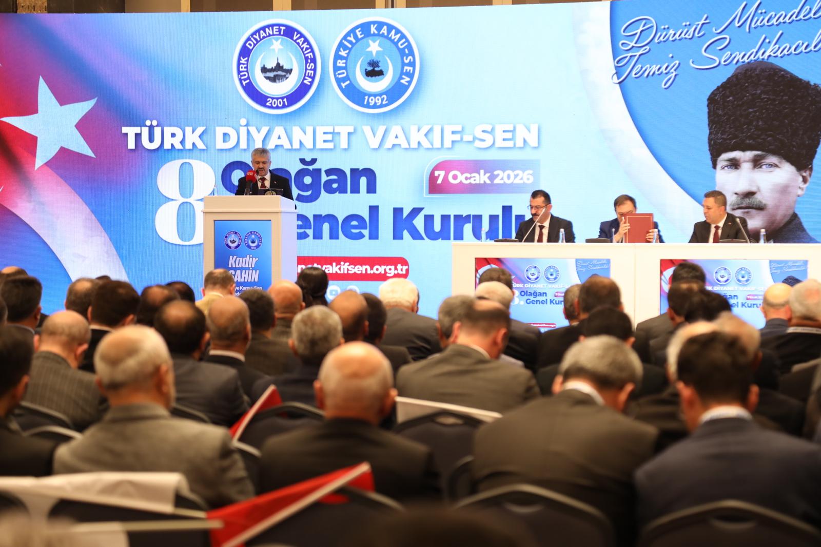Bu vesileyle Türk Diyanet Vakıf-Sen’in 8. Olağan Genel Kurulu’nu bir kez daha tebrik ediyor, başarılar diliyorum.”dedi.