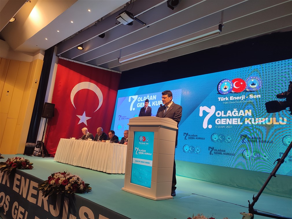 Konfederasyonumuza bağlı Türk Enerji-Sen 7. Olağan Genel Kurulu gerçekleştirildi. Genel Kurul’da Türk Enerji-Sen Genel Başkan Yardımcısı Şuayip Deniz Demir delegelerin oylarıyla yeni genel başkan olarak seçildi.