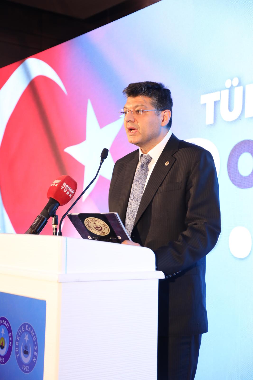 Sendikal mevzuatta kapsamlı bir revizyona ihtiyaç olduğunu dile getiren Kahveci, yaklaşık 20 milyon insanı doğrudan ya da dolaylı temsil eden kamu çalışanlarının haklarının korunması ve geliştirilmesi için sendikalara daha güçlü temsil yetkileri verilmesi gerektiğini ifade etti.