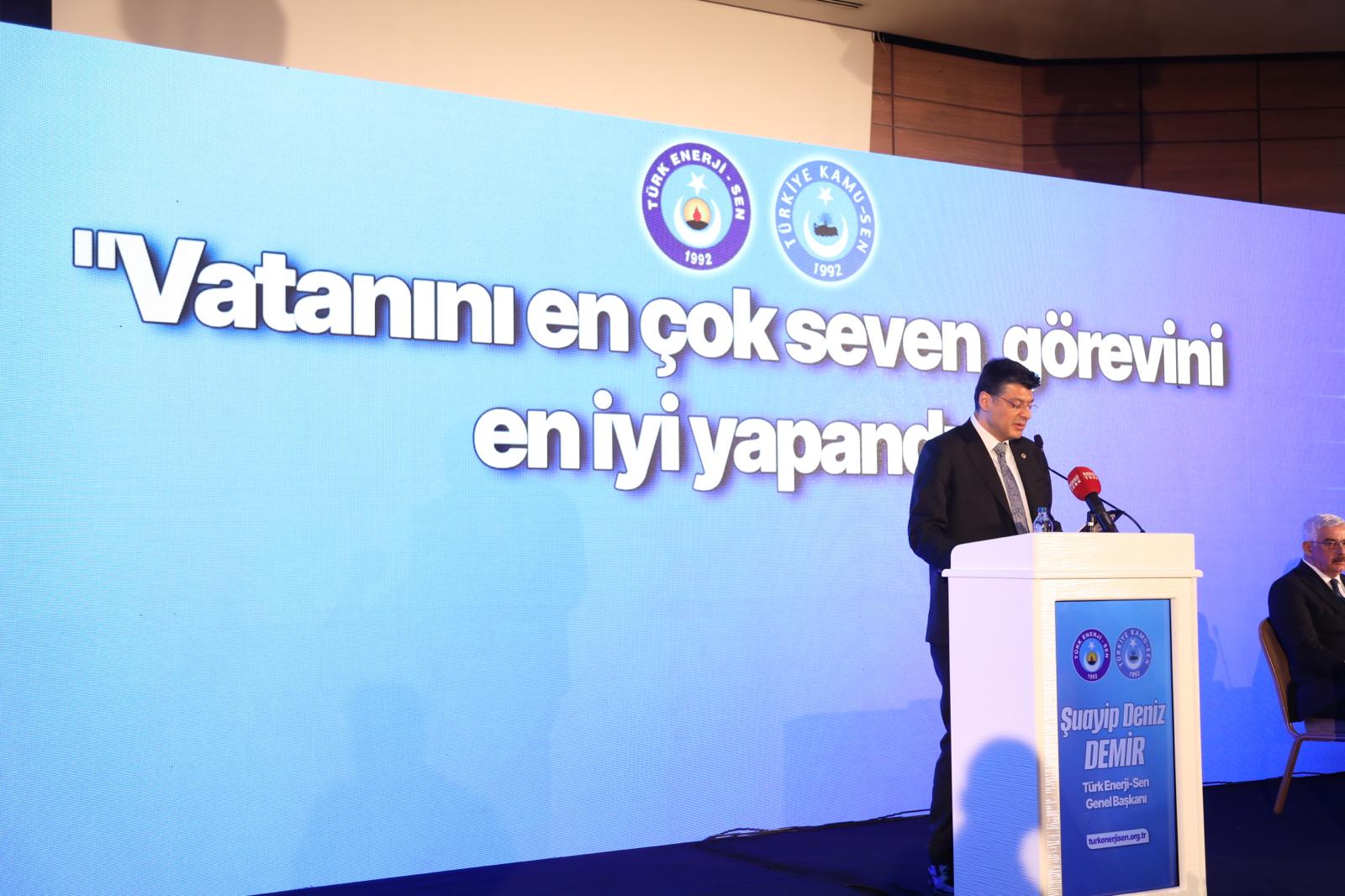 8. Olağan Genel Kurulu’nun açılış konuşmasını yapan Türk Enerji-Sen’in Genel Başkanı Şuayip Deniz Demir, “Genel Kurulumuzun kamu çalışanlarımıza ve camiamıza hayırlı olmasını diliyorum” dedi.