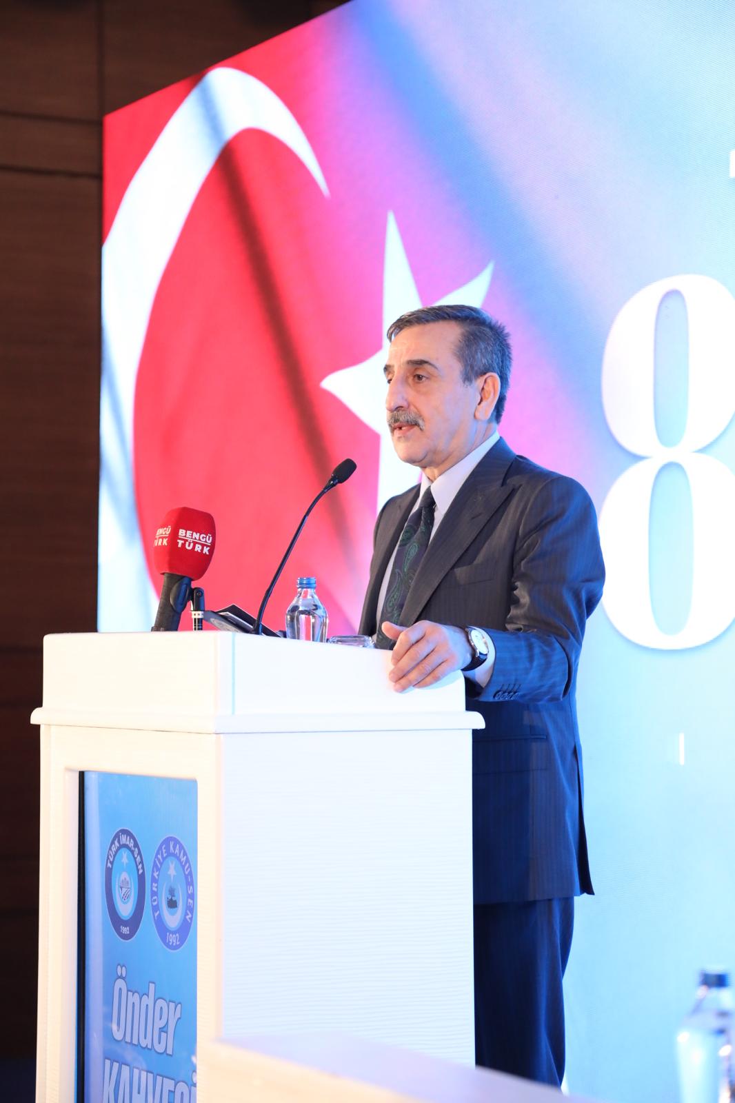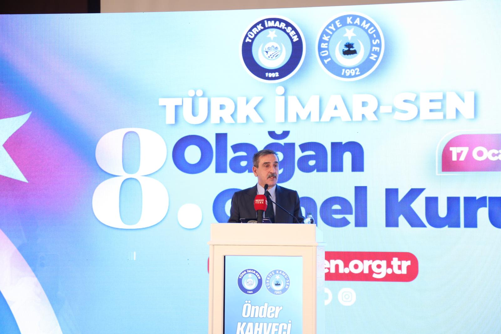 Türk İmar-Sen 8. Olağan Genel Kurulu’nda katılımcılara hitap eden Türkiye Kamu-Sen Genel Başkanımız Önder Kahveci, Genel Kurulun hayırlı olmasını dileyerek sözlerine başladı.