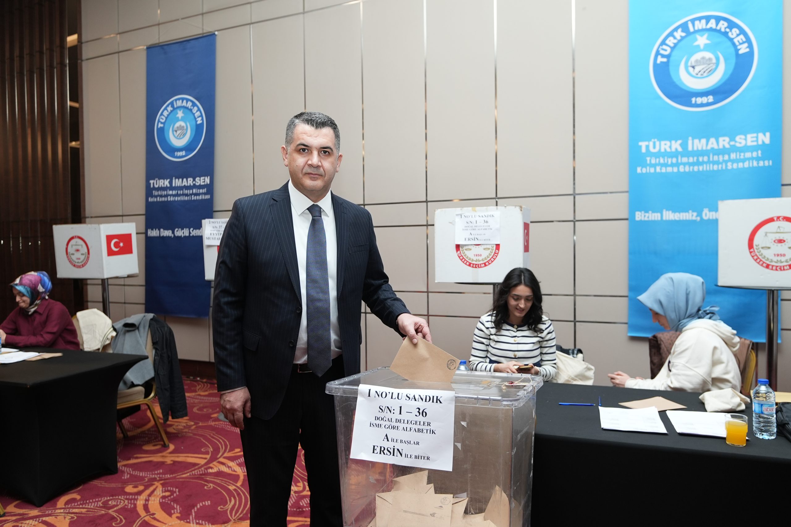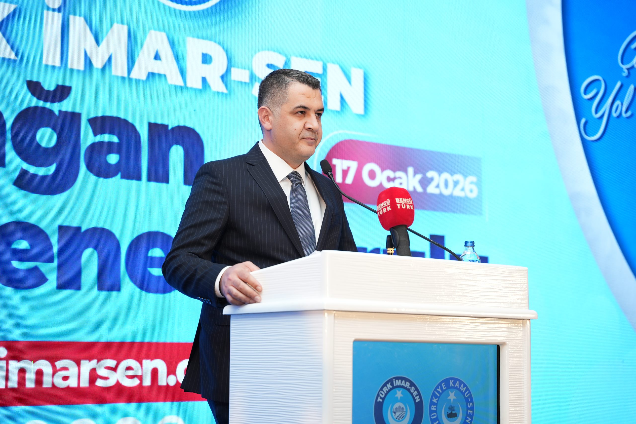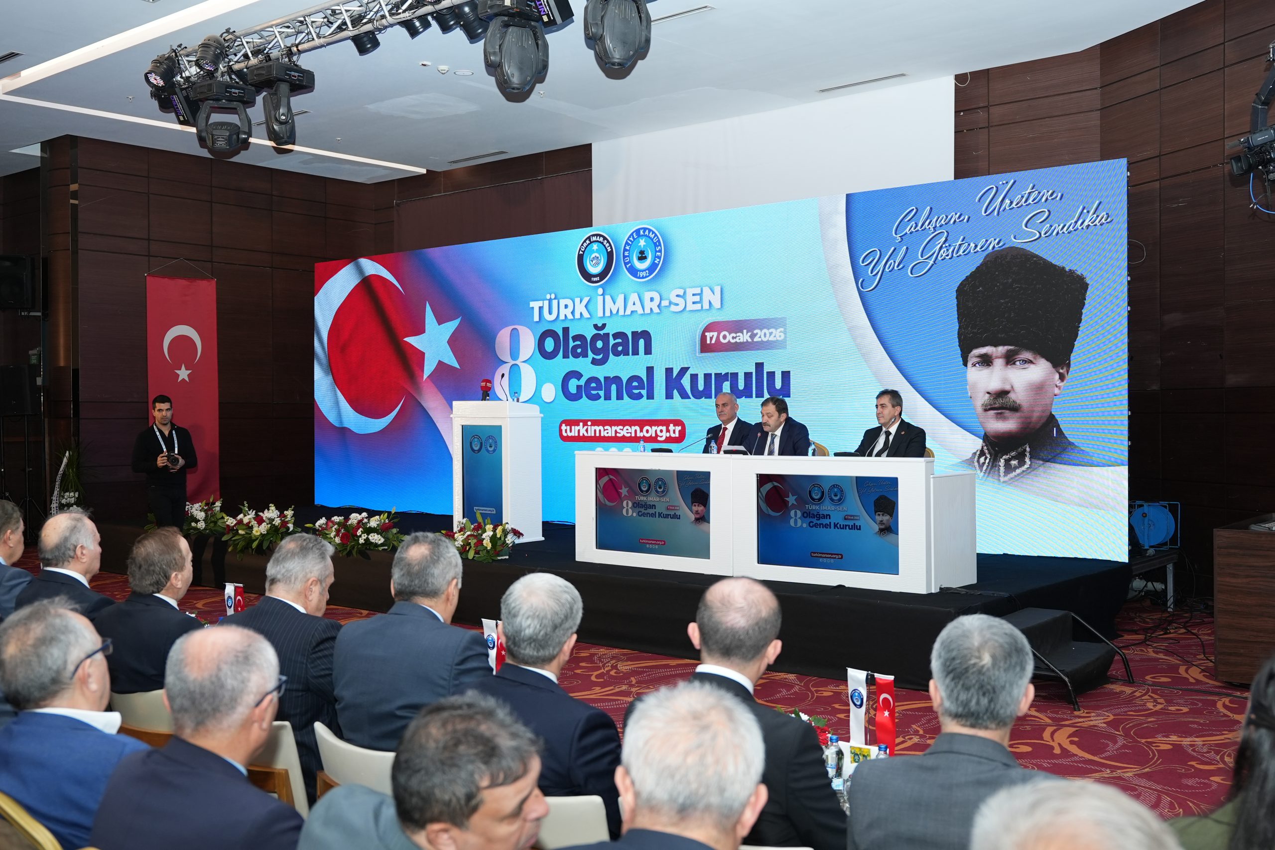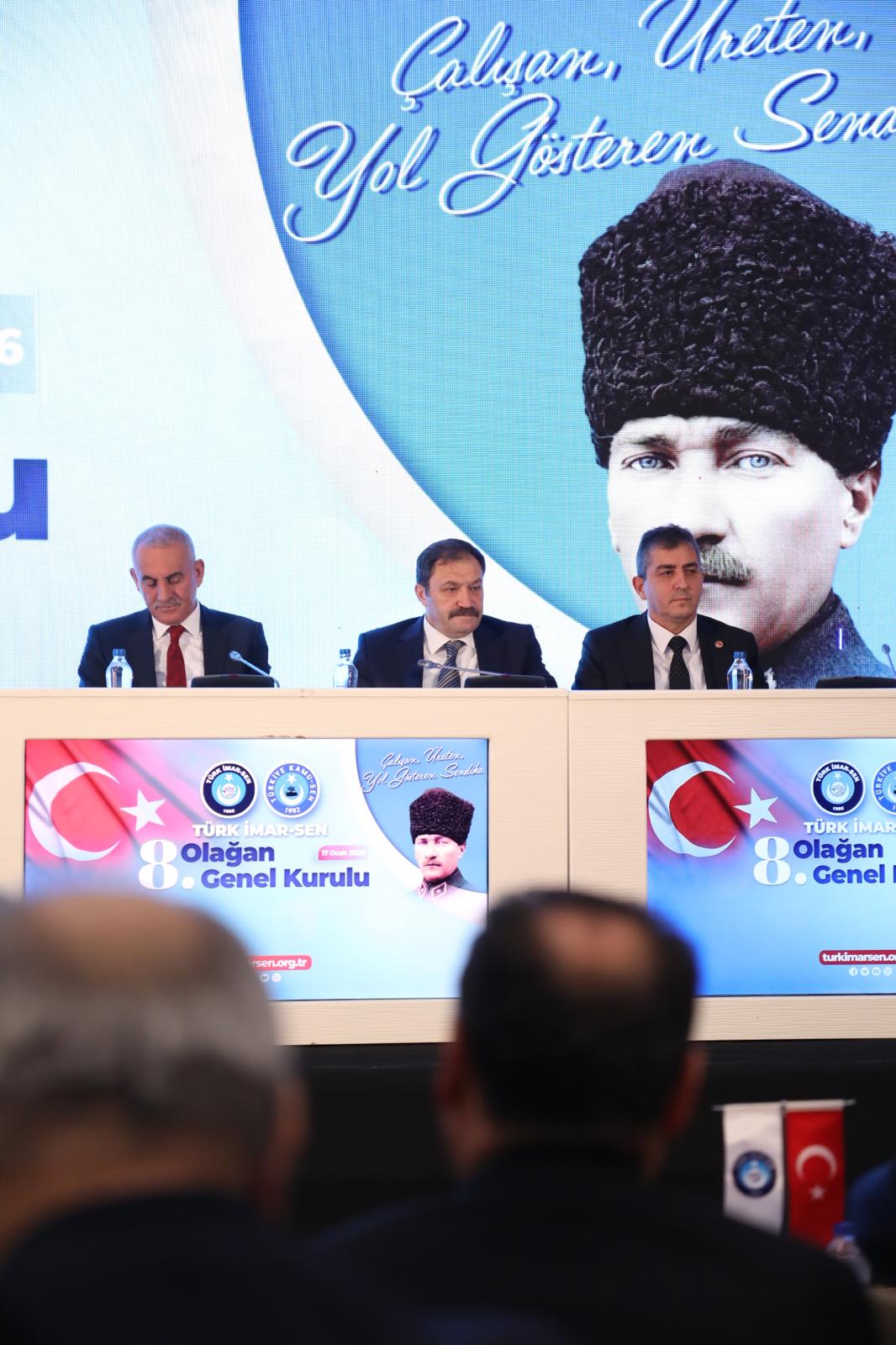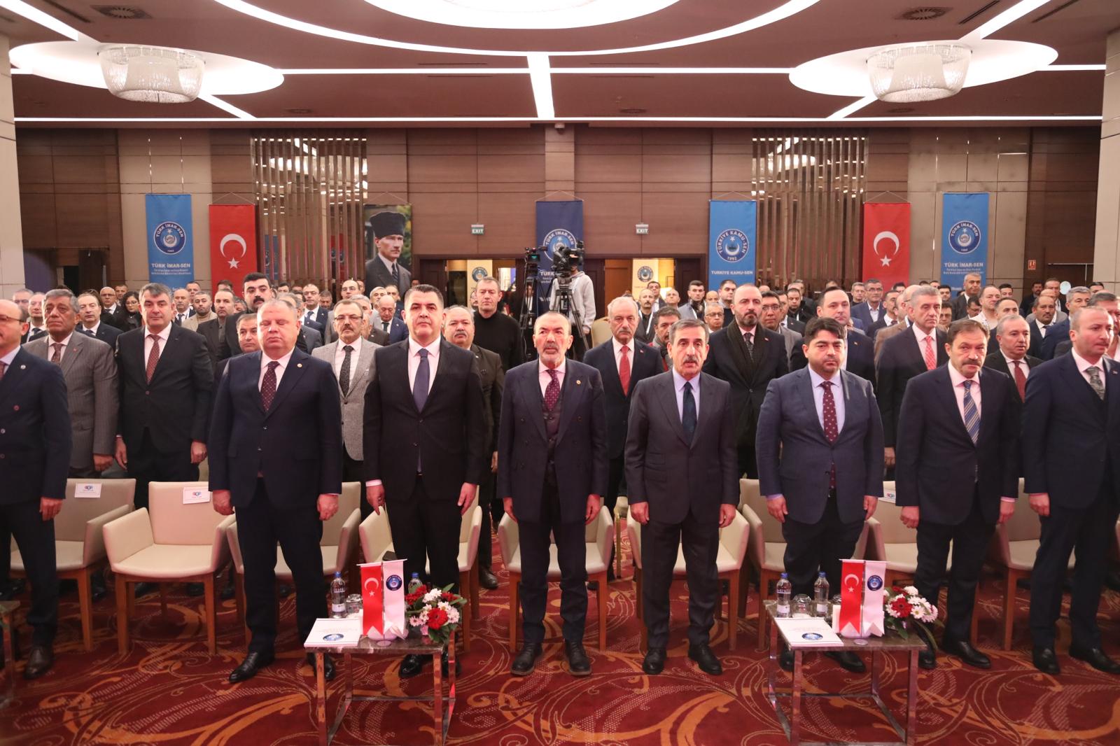 Türk İmar-Sen kişilerin ve makamların değil, emeğin ve mücadelenin sendikasıdır. Cumhuriyetimizin yeni ikinci asrında sendikacılık tarihine adını altın harflerle yazdıracaklar vatan ve millet sevdalıları bu salonda bizimle birliktedirler. Mülkiyetin Güvencesi Tapu ve Kadastro çalışanları işte bu salondadır. Gidemediğin yer senin değildir anlayışıyla görev yapan Karayolları Çalışanları işte bu salondadır. Asrın inşasının ve temiz çevrenin mimarları Çevre, Şehircilik ve İklim değişikliği bakanlığı çalışanları işte bu salondadır. “Nerede hayat orada AFAD” düsturuyla 7/24 görev yapan AFAD çalışanları işte bu salondadır.