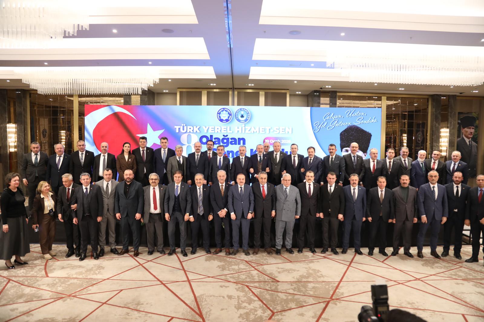 Konfederasyonumuza bağlı Türk Yerel Hizmet-Sen’in 8. Olağan Genel Kurulu gerçekleştirildi. Genel Başkan Tuncay Erden emekliye ayrılırken Genel Başkanlık görevine İbrahim Tabakoğlu seçildi.
