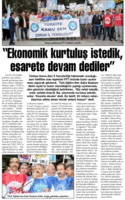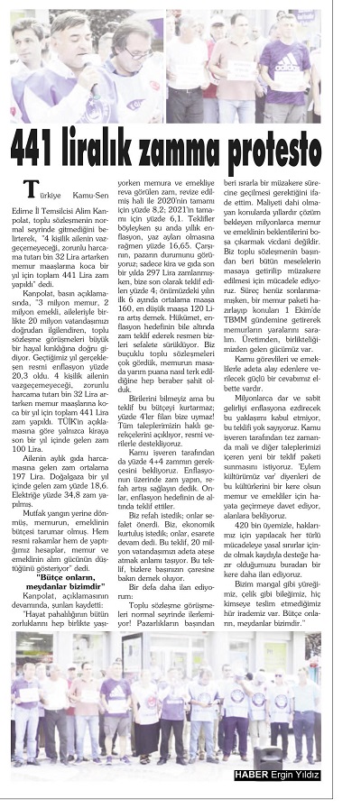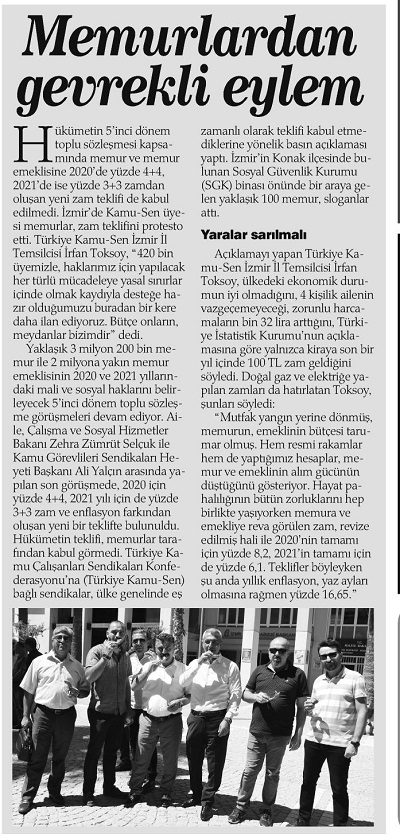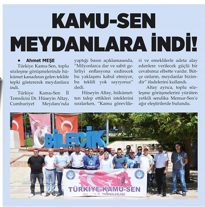Türkiye Kamu-Sen il temsilcileri, eş zamanlı olarak hükümetin toplu sözleşmede sunduğu teklifi, yaptığı eylemlerle ve basın açıklamalarıyla protesto etti.