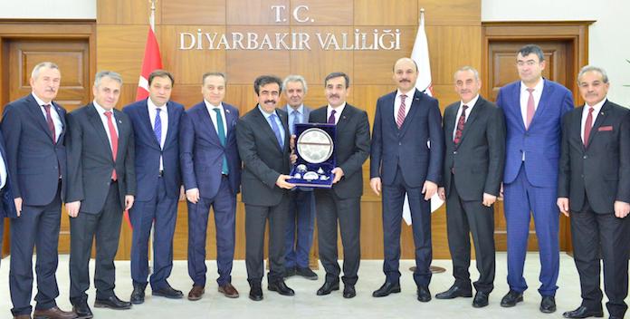 Genel Başkanı Önder Kahveci ve sendikalarımızın Genel Başkanları daha sonra Diyarbakır Valisi Hasan Basri Güzeloğlu’nu ziyaret etti. Kahveci ziyarette, Diyarbakır’da görev yapan kamu çalışanlarının problemlerinin çözümü noktasında Vali Güzeloğlu’ndan girişimlerde bulunmasını istedi. Genel Başkan Kahveci, bölgede görev yapan tüm kamu çalışanlarının beklenti ve taleplerini Türkiye Kamu-Sen olarak önemsediklerini belirterek Diyarbakır Valisi Güzeloğlu ile diyalog halinde sorunların çözümü için çaba sarf ettiklerinin altını çizdi.
