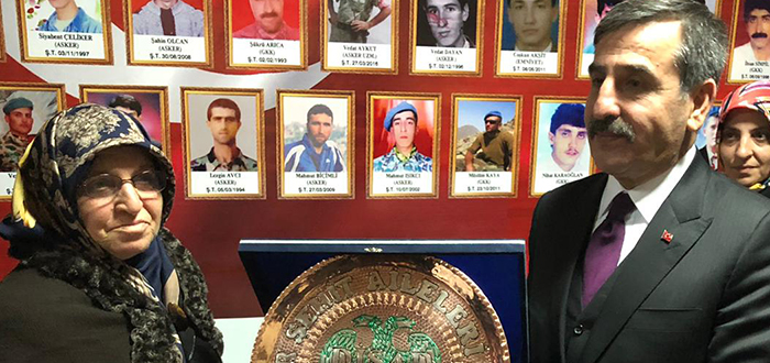 Heyetimiz, Diyarbakır Şehit Aileleri Derneğini de ziyaret etti. Burada konuşan Genel Başkan Önder Kahveci, “ milletimizin bu topraklarda ilelebet huzur ve güven içerisinde yaşayabilmesi için cansiperane mücadele ederek bu uğurda canlarını ortaya koyan, gencecik yaşında toprağa düşerek bu toprakları bize vatan yapan bütün şehitlerimize minnettarız. Coğrafyamızda gözü olan şer güçlerin maşası haline gelip, milli birlik ve beraberliğimizi bozma amacı içindeki yerli işbirlikçiler de coğrafyamızı kana bulayan emperyalist güçler de bilmelidir ki kardeşliğimizi, birliğimizi yok etmeye kimsenin gücü yetmeyecektir.” dedi.