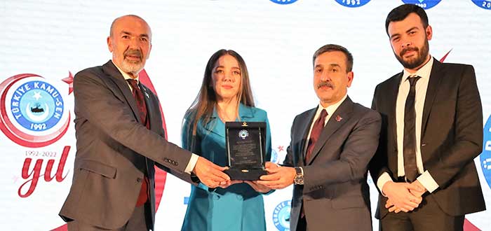 Yürekleri ısıtan o görüntüler eşliğinde sahneye çıkan Büşra Kayalı Durmaz’a yılın annesi ödülünü MHP Genel Başkan Yardımcısı ve Ankara Milletvekili Yaşar Yıldırım ile Türkiye Kamu-Sen Genel Başkanı Önder Kahveci takdim etti.