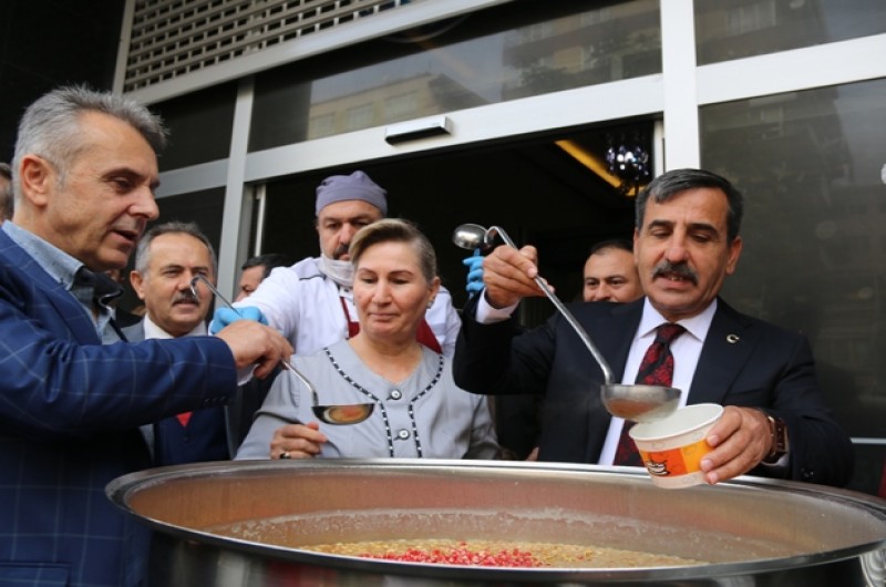 Genel Başkanımız Önder Kahveci’nin konuşmasının ardından, kazanlarda ki aşureler üyelerimize ve davetlilerimize dağıtıldı.