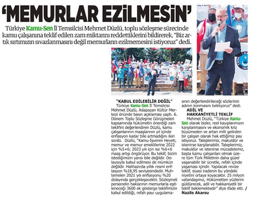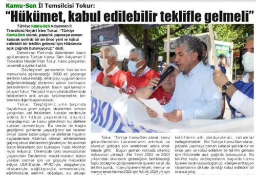 Temmuz artışından müstakil olarak kamu çalışanlarının gelir kaybını telafi edici seyyanen zam yapmasını istiyoruz.