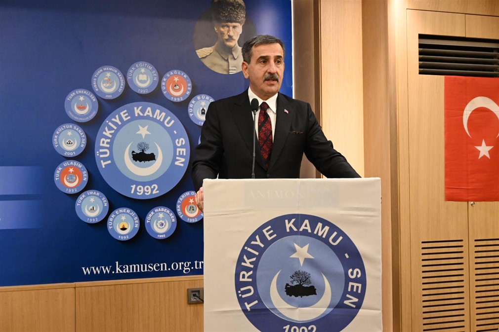 Türkiye Kamu-Sen Eğitim Akademisinin kurulmasına yönelik hazırlıkların tamamlandığının sevincini sizlerle paylaşmak isterim. Bu akademi vesilesi ile teşkilatlarımızı akademik anlamda güçlendirecek, sendikal çalışmalarımızı ortak bir mücadele zeminine taşıyacak, Türkiye Kamu-Sen’in haklı mücadelesini nesilden nesile aktaracak sistemli ve disiplinli bir hale getireceğiz. Türkiye Kamu-Sen, 81 ilde 500 şubesi ve yüz binlerce mensubu ile her birimizin memleket sathında nereye giderse gitsin kapıyı çaldığında bir sıcak çorbası hazır bir taze çayı demli bulabileceğini bildiğimiz yuvamızdır. Kendisini yalnız sendikal mücadelelerle sınırlamayan bu milli anlayış, devletin ve milletin geleceğini ilgilendiren her konuda tavır sahibi olmayanlar için anlaşılamazdır. Bizler, Kamu-Sen’i yalnızca bir sendika çatısı olarak değil, savunduğumuz milli değerlerin bir bayrak taşıyıcısı olarak görüyoruz” dedi.